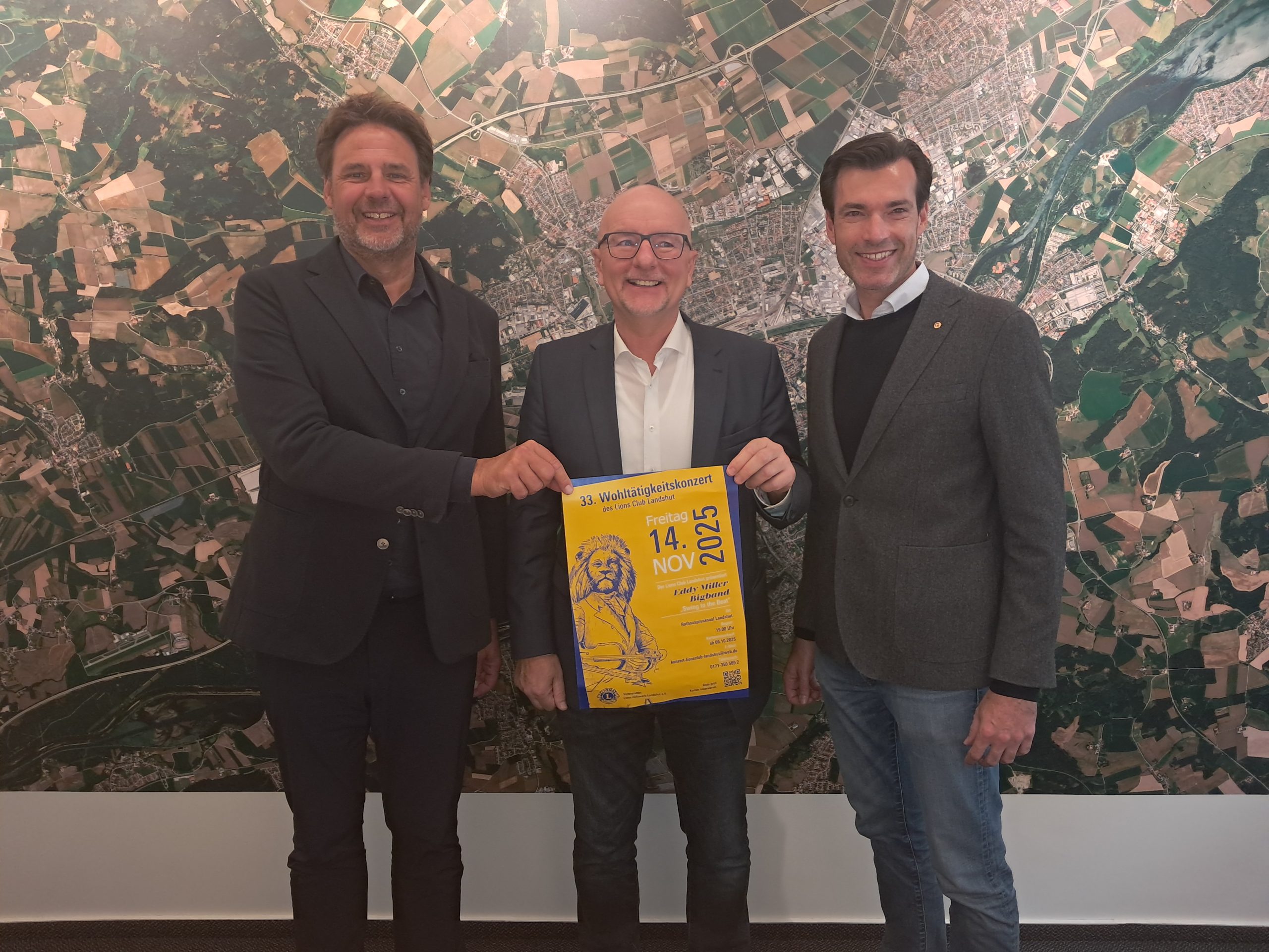 Bild: Konzertbeauftragter Gerhard Steinberger, Schirmherr OB Alexander Putz, Lionspräsident Dr.Alexander Beck